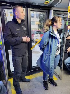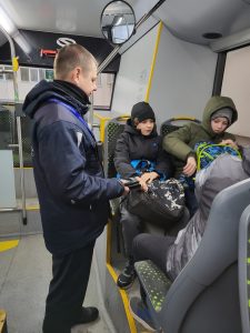 Šodien skolas pagalmā iegriezās “Drošības busiņš”, lai 4.klases skolēni kopīgi ar Rīgas pašvaldības policijas un Rīgas satiksmes darbiniekiem pārrunātu ar drošību sabiedriskajā transportā saistītus jautājumus. Skolēni uzzināja, ko darīt ar atrastām vai nozaudētām mantām, kā rīkoties, kad transportā iekāpj sirmgalvji vai cilvēki ar kustību traucējumiem. Vai kāpēc neiesaistīties sarunās ar svešām, aizdomīgām personām, pat tad, ja tās piedāvā kaut ko aizraujošu. Noderīgs bija atgādinājums reģistrēt e-talonu, lai varētu to uzrādīt satiekoties ar kontrolieri. Tagad 4.klases skolēni ir droši, ka pieklājības normas un cieņpilnas attiecības padara braucienu patīkamāku ikvienam Rīgas iedzīvotājam un pilsētas viesim gan ziemas salā, gan vasaras karstumā.