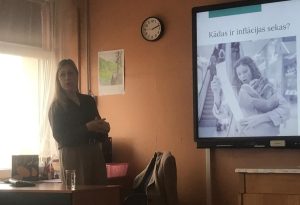 Šodien Finanšu pratības nedēļas 2026 ietvaros skolā viesojās Latvijas Bnakas Monetārās politikas pārvaldes Makroekonomikas analīzes daļas vecākā ekonomiste Linda Oliņa. 8.a klases skolēni noklausījās saistošu lekciju par inflācijas cēloņiem un sekām Latvijā un citās Eirozonas valstīs. Skolēnu un skolotāju pārdomas raisīja statistikas dati par inflācijas apmēriem nesenā pagātnē un iespējamo pieaugumu nākotnē. Noslēgumā katrs skolēns vārēja pārdomāt, cik strauji inflācijas ietekmē būtu jāpalielinās kabatas naudas apmēram, lai pirktspēja paliktu nemainīga. Skolēniem bija iespēja uzdot jautājumus par bankas speciālistiem nepieciešamajām zināšanām un prasmēm. Paldies Latvijas Bankai par iespēju skolās sastapt izcilus nozares speciālistus.