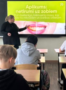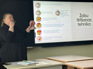 Veselīgu smaidu un patīkamu elpu nevar saglabāt bez veseliem zobiem. 4. un 5.klašu skolēni šodien piedalījās izglītojošā nodarbībā par mutes dobuma higiēna un pareizas zobu kopšanas metodēm. Skolēni uzzināja, ka nozīme ir gan zobu tīrīšanas tehnikai, gan zobu birstes izvēlei, tāpat svarīga ir ciņa ar zobu aplikumu, kurā palīdzība jālūdz speciālistiem. Interesanta bija iepazīšanās ar zoba uzbūvi. Tas palīdzēja izprast, kāpēc zobi dažkārt sāp, un kā tos labāk pasargāt no stresa, ko rada auksti vai pārlieku karsti dzērieni. Rīt līdzīgu nodarbību apmeklēs sesto klašu skolēni. Paldies skolas veselības māsai Vinetai Briedei par lekcijas organizēšanu, sadarbībā ar Rīgas valstspilsētas Sabiedrības veselības veicināšanas un profilakses nodaļas speciālistiem.