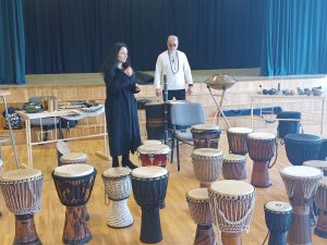 Mūziķi Nils Īle un Maija Sējāne Īle aicināja uz izglītojošu, muzikālu darbnīcu, kuras laikā skolēni tika iepazīstināti ar dažādiem mūzikas un skaņu instrumentiem no plašās pasaules. Klausoties katrā no tiem, tika aicināti meklēt līdzības ar dabā sastopamām skaņām un aktīvi darboties līdzi. Caur kopīgu instrumentu saspēli bērni iepazina skaņas daudzveidīgo burvību, izmēģināja dažādu tautu skaņu instrumentus īpaši perkusijas, kas nereti tiek izmantoti arī kā efekti filmu skaņu celiņu veidošanā. Kopā radīja muzikālas skaņu gleznas, eksperimentēja ar dažādiem skaņu rīkiem, guva iemaņas ritma spēlē, veidoja kopējas muzikālas kompozīcijas. Katram bija iespēja ne tikai skatīties un klausīties, bet pieskarties, izmēģināt.