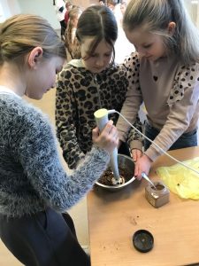 Ievērojot higiēnas prasības un drošības noteikumus, skolēni paši smalcināja visas izejvielas un pagatavoja konfektei līdzīgu uzkodu, ko varēja gan pagaršot, gan iesaiņot nešanai uz mājām. Lai gan našķis nebija pārāk salds, skolēni to atzina par pietiekami gardu un interesantu, lai uzcienātu vecākus.