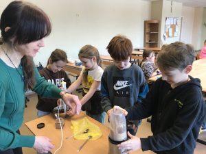3.klasēm šodien bija iespēja attīstīt prasmes veselīgu un gardu uzkodu gatavošanā. Skolēni uzzināja vienkāršu recepti un pagatavoja veselīgu našķi bez cukura un termiskas apstrādes. Atsvaidzināja zināšanas par zemesriekstu, kakao pupiņu, dateļu un kokosriekstu augšanas apstākļiem un garšas īpatnībām, kā arī izmēģināja šos produktus, praktiski pagatavojot uzkodu.