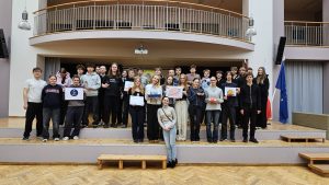 Mūsu skolas astronomijas pulciņa dalībnieces, 8.a klases meiteņu komanda – Elizabete Apine, Loreta Viktorija Bole, Kerolaina Tekla Kucina, Gundega Kundziņa, Marta Rozīte un Keita Tože – demonstrēja vislabākās zināšanas un prasmes, iegūstot godpilno 1.vietu piemiņas balvu un ieejas biļetes Kopernika zinātnes centrā Varšavā.