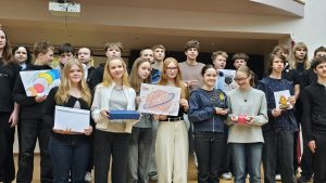Mūsu skolas astronomijas pulciņa dalībnieces, 8.a klases meiteņu komanda – Elizabete Apine, Loreta Viktorija Bole, Kerolaina Tekla Kucina, Gundega Kundziņa, Marta Rozīte un Keita Tože – demonstrēja vislabākās zināšanas un prasmes, iegūstot godpilno 1.vietu piemiņas balvu un ieejas biļetes Kopernika zinātnes centrā Varšavā.
